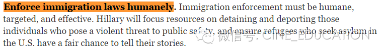 希拉里在自己的竞选网站上也说,她将“人道”地执行美国的移民法。而政治家的言论,永远都是euphemism(委婉语),这意味着大赦。原文可见:https://www.hillaryclinton.com/issues/immigration-reform/ ,截图如下: