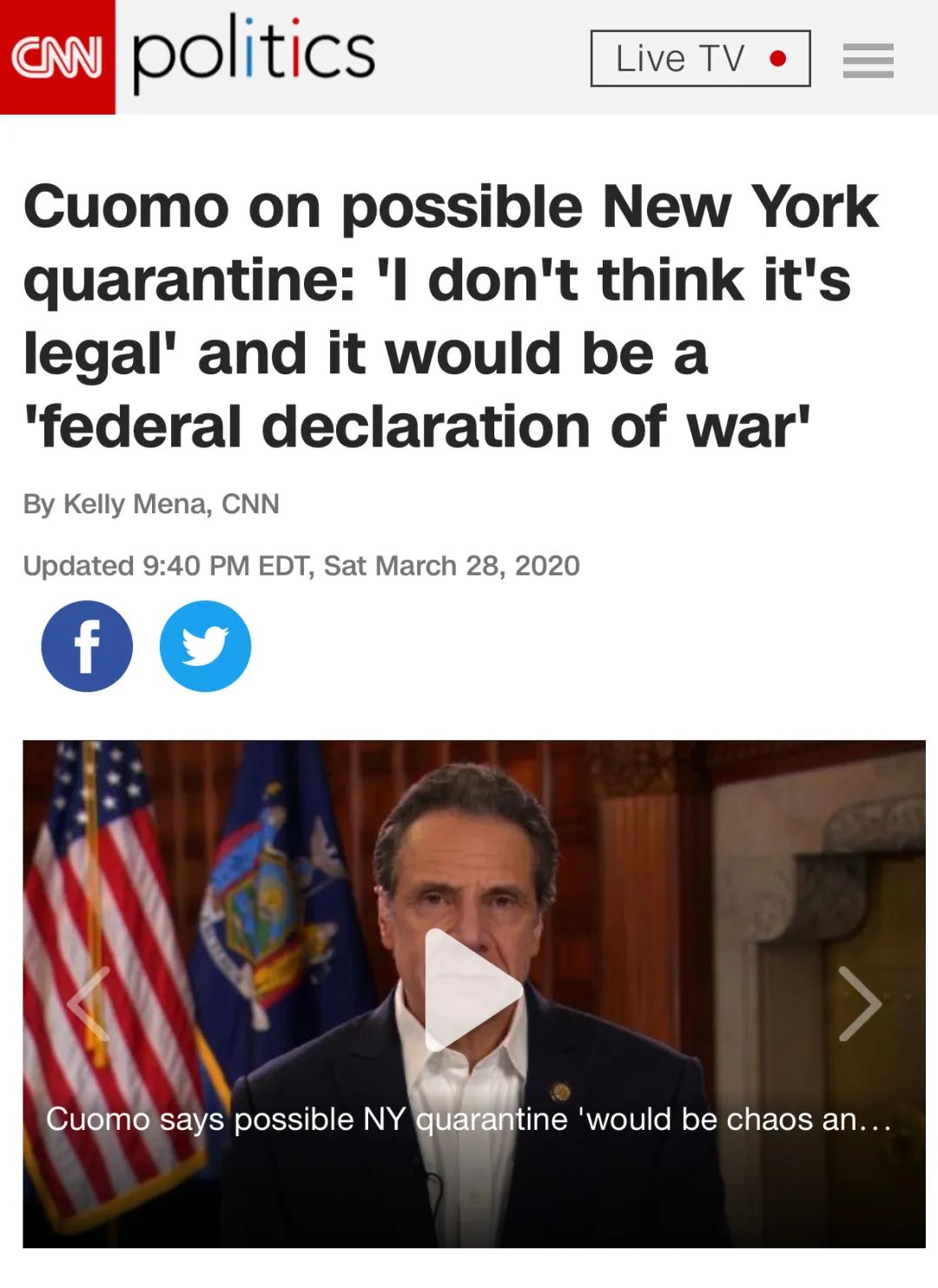 在文化层面上的问题,不局限于普通民众。决策者也有同样的问题。很显然,他们身上有一种傲慢与轻视—中国的经验因为缺乏透明度且不可验证,所以不具备太多参考价值。一个很好的例子是:中国医学科研人员很早就证明了无症状感染者也具有传染性。而这样一个简单的事实,美国疾控中心的科学家直到美国确证病例数接近10万人左右才弄明白。而此前无症状感染者的感染数量已无法估量。忽视来自中国的经验,让美国付出了巨大的代价。还有一个原因不容忽视:那就是美国的多元化。多元化,尤其是种族的多元化,对于防疫工作是个挑战。例如,大家都能发现韩国和德国的死亡率特别低。他们都是单一民族国家(虽然德国近年来引入了大量的穆斯林移民,但其人口的主体-80+%依然是日耳曼人),但美国就不同了。尤其是纽约,简直是个世界人民的大杂烩。这次纽约疫情最为严重的区域就是皇后区,那里生活着大量的非裔和西裔。和德意志民族的整齐划一和纪律严明相比,这些地区可以说是截然相反的存在。所以纽约的确诊病例多也就不难理解了。例如,特朗普看着大纽约都会区(包括纽约和新泽西)的确诊病例数节节攀升,心里那是个着急啊。他想抄中国的作业:封城!结果,被纽约州州长Andrew Cuomo怒怼了回去:你敢!后来特总缩回去了。原因是宪法并没有赋予联邦政府这个权力。这就是美国。在美国,防疫工作主要是由州政府和地方政府承担,联邦政府基本是一个配角,主要提供一些支援和指导性意见。听不听,都是地方政府说了算。这是其一。