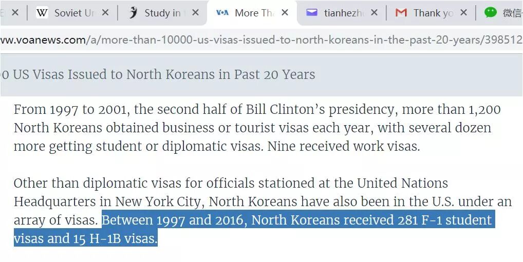 同样被美国列为邪恶国家的朝鲜,也有学生在美国留学。根据美国之音的消息,1997年至2016年之间,美国共向朝鲜公民发放了281张留学签证!虽然人数少了点,但考虑到朝鲜的经济能力,这也实属不易了。