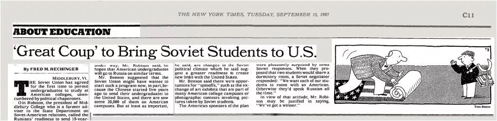 有人可能会觉得伊朗和朝鲜都是小国,但实际上前苏联也有不少学生在美国留学。1987年,前苏联政府首次允许其大学本科生来美国独自留学(以前都是要有政治辅导员陪同)。自此,每年都有不少学生到美国留学。